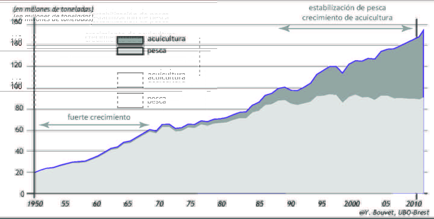 La pesca y la acuicultura atraviesan un proceso de globalización. Observamos una extensión de los caladeros al nivel oceánico mundial y una explotación de muchas especies del mar, de forma industrial e intensiva, asociada al crecimiento de demanda y al crecimiento de la población. Para comprender cómo se constituyen los territorios de pesca, se necesita tener una mirada con distintas escalas para ver el deslizamiento de producción que existe desde los países del norte hacia las potencias haliéuticas de Asia, que son también productores de acuicultura. La distribución y el consumo continúan realizándose en los países occidentales.