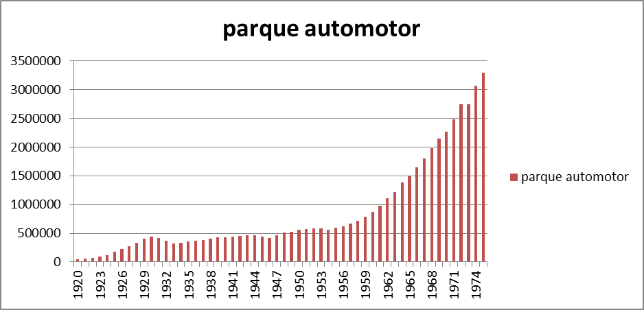 Pese al desar­rol­lo vial, la segun­da guer­ra mundi­al provocó un crec­imien­to más lento del par­que auto­mo­tor,  a par­tir de las lim­ita­ciones gen­er­adas en la pro­duc­ción y las exporta­ciones de vehícu­los des­de los país­es indus­tri­ales [Gomez y Tchor­dokian 2017]. A par­tir de allí el crec­imien­to fue con­stante, pasan­do las 500.000 unidades paten­tadas a prin­ci­p­ios de las décadas de 1950, 1.000.000 una déca­da después, y a prin­ci­p­ios de la déca­da sigu­iente 3.000.000 de vehícu­los paten­ta­dos. Este crec­imien­to estu­vo acom­paña­do por el incre­men­to de las rutas y caminos.