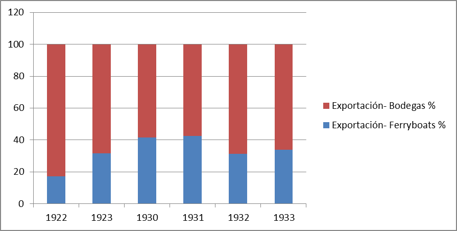 Gráfico VII: Salida, en valores, por los puertos y ferry boat (1922- 1933)