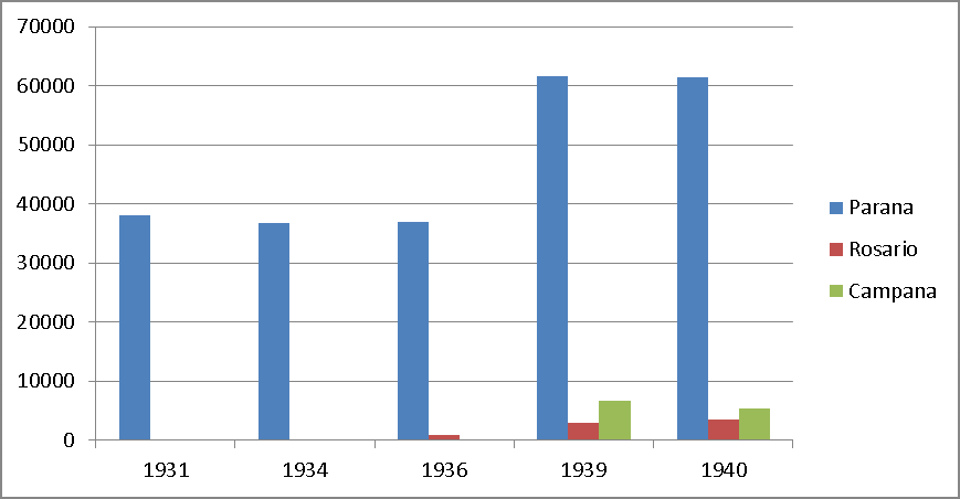 Gráfico VIII: Movimiento de vehículos por las balsas durante la década de 1930. (Paraná- Santa Fe, Victoria- Rosario e Ibicuy- Campana)
