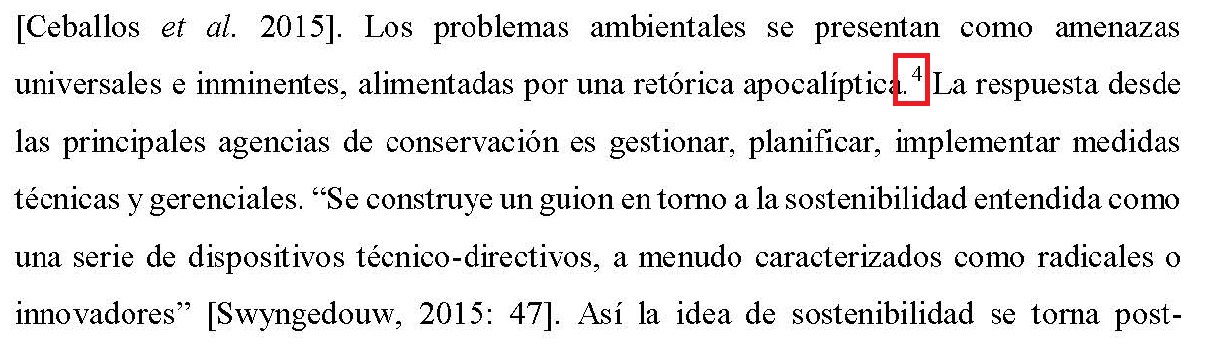 Las notas deberán insertarse correlativamente a pie de página (Letra Times New Roman 10). La referencia numérica de las citas a pie de página que se encuentran en el cuerpo del texto deben insertarse después del punto y no antes.